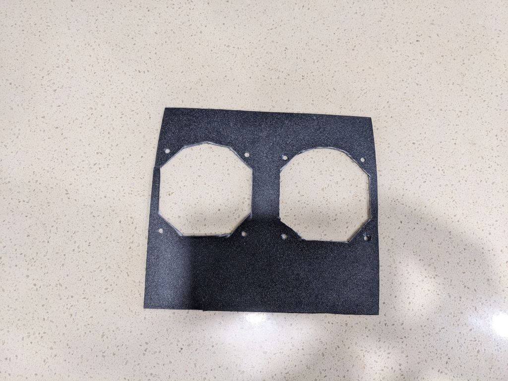 제 차 수납공간 사이즈로 잘라주고, 80미리 팬 구멍을 두개 뚫어줍니다.
